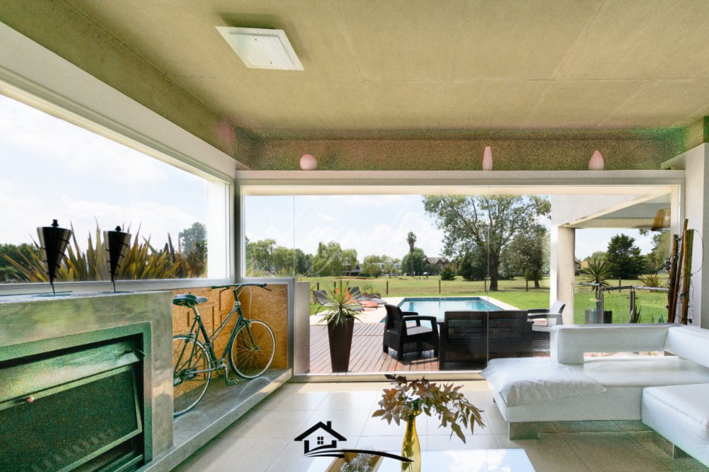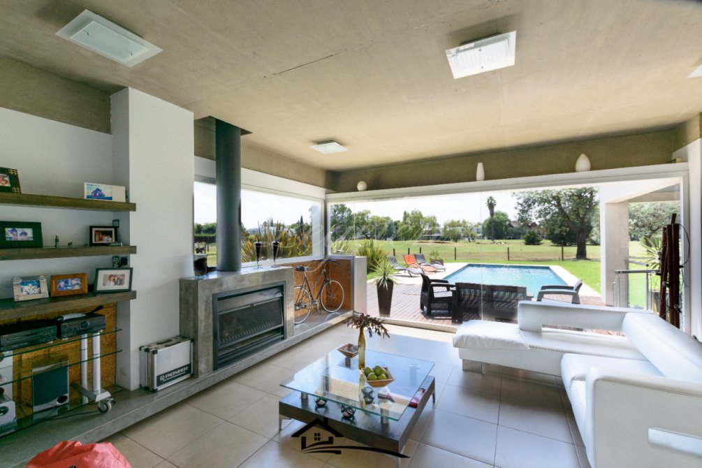 hall de acceso. living , comedor y cocina integrado. Chimenea a leña(living). Parrilla integrada. Pisos de porcelanato. Baño de visita y baño de servicio/ pileta.