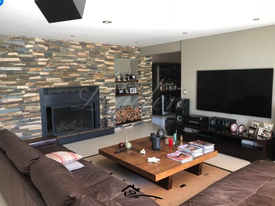 • Family Room con amplio sector con audio envolvente y para TV de gran tamaño, en el sector se incluye un hogar a leña importante y pared revestida en piedra natural.