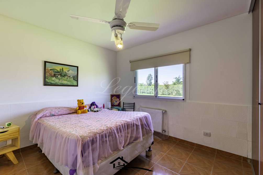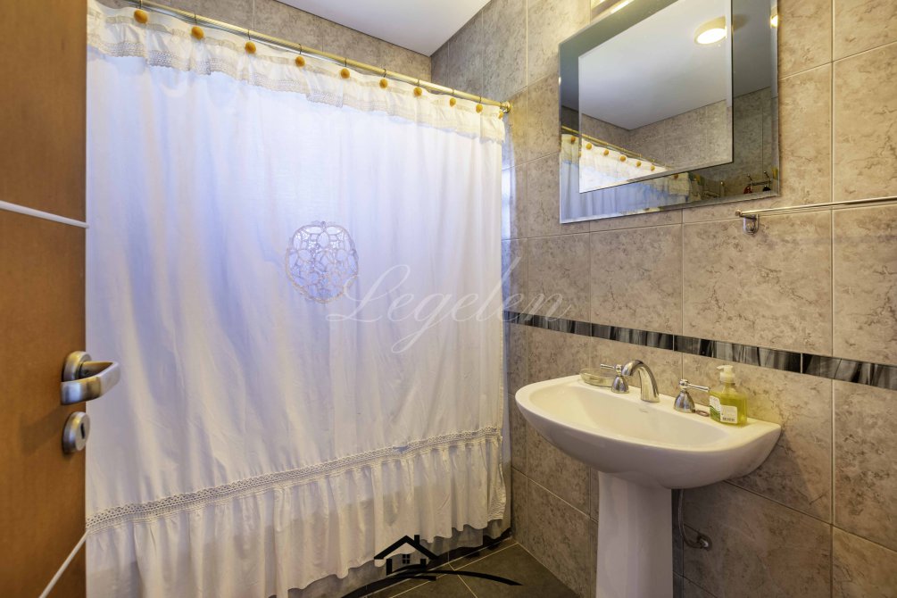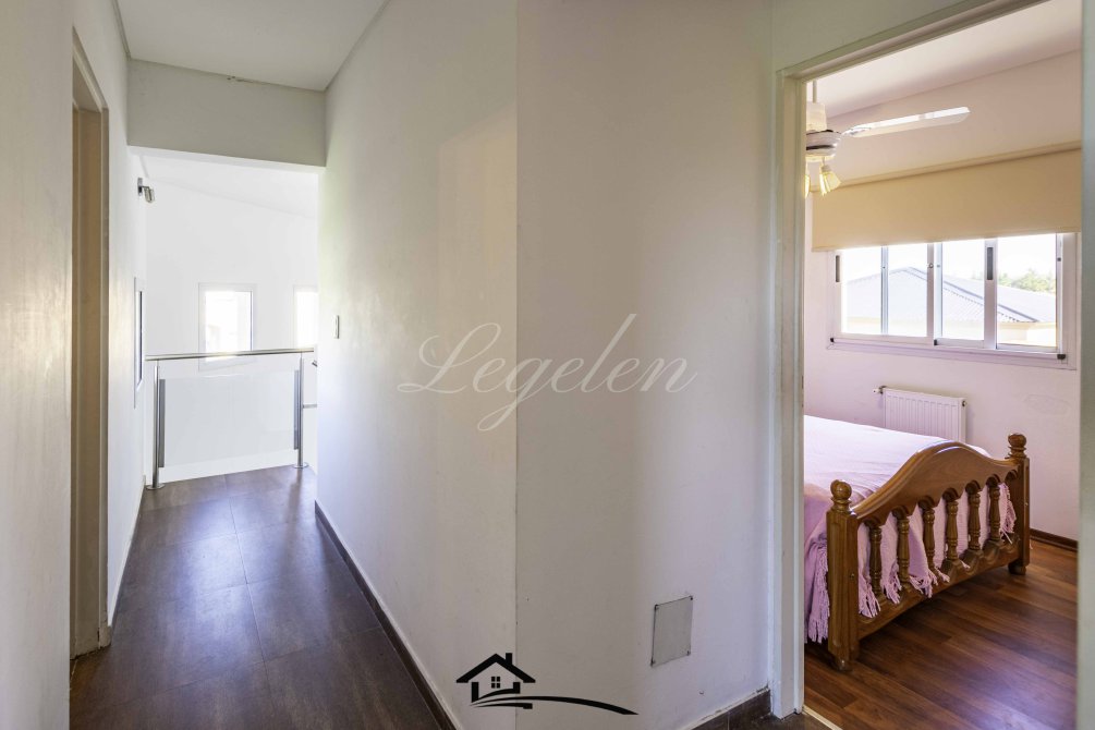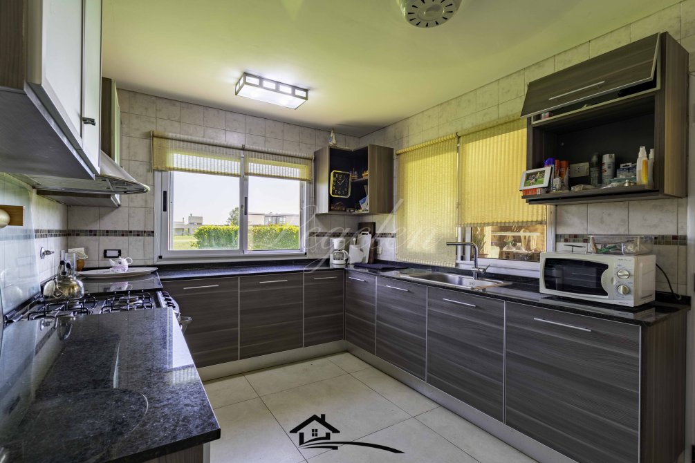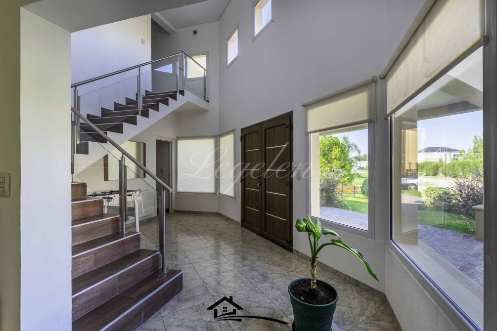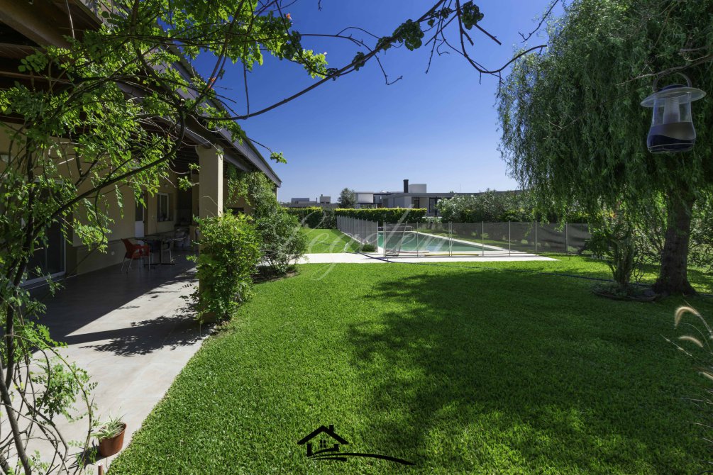 Garaje para 2 autos, quincho con parrilla y con isla-mesada, espacio de guardado, lavadero, baño completo con 2 duchas, 2 bachas con espejo, hermoso jardín con cerco de plantas y piscina climatizada de 32 m2.